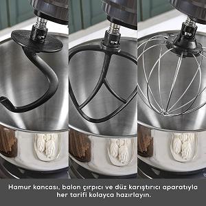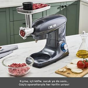 Karaca Multichef Kıyma Çekme /Sucuk-Sosis/İçli Köfte Aparatlı Hamur Yoğurma Makinesi Antrasit 1900W 5,5L